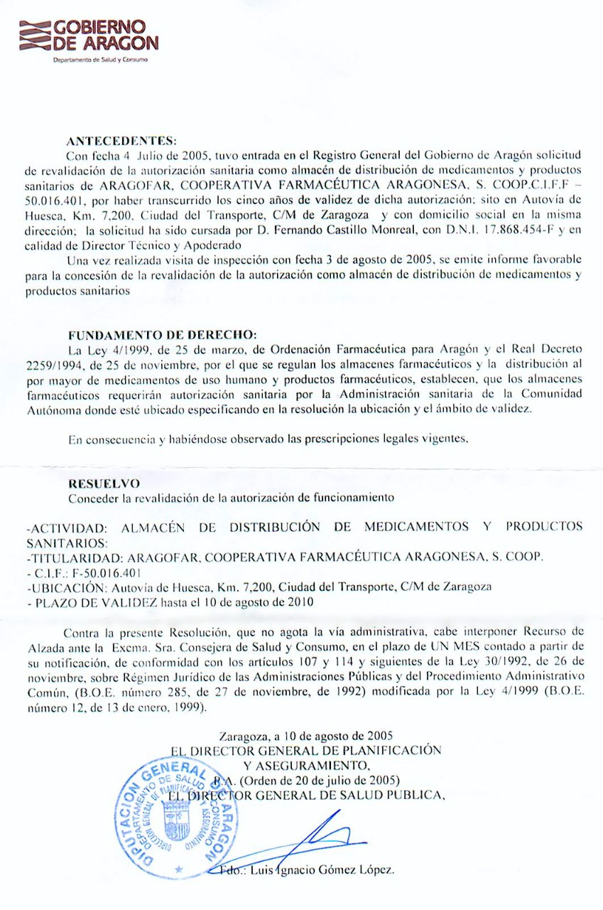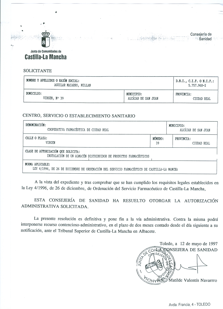 Todas las cooperativas y el almacén de EDIFA Madrid que se dedican al suministro de medicamentos están debidamente autorizados como almacenes mayoristas de medicamentos en virtud de autorización administrativa.